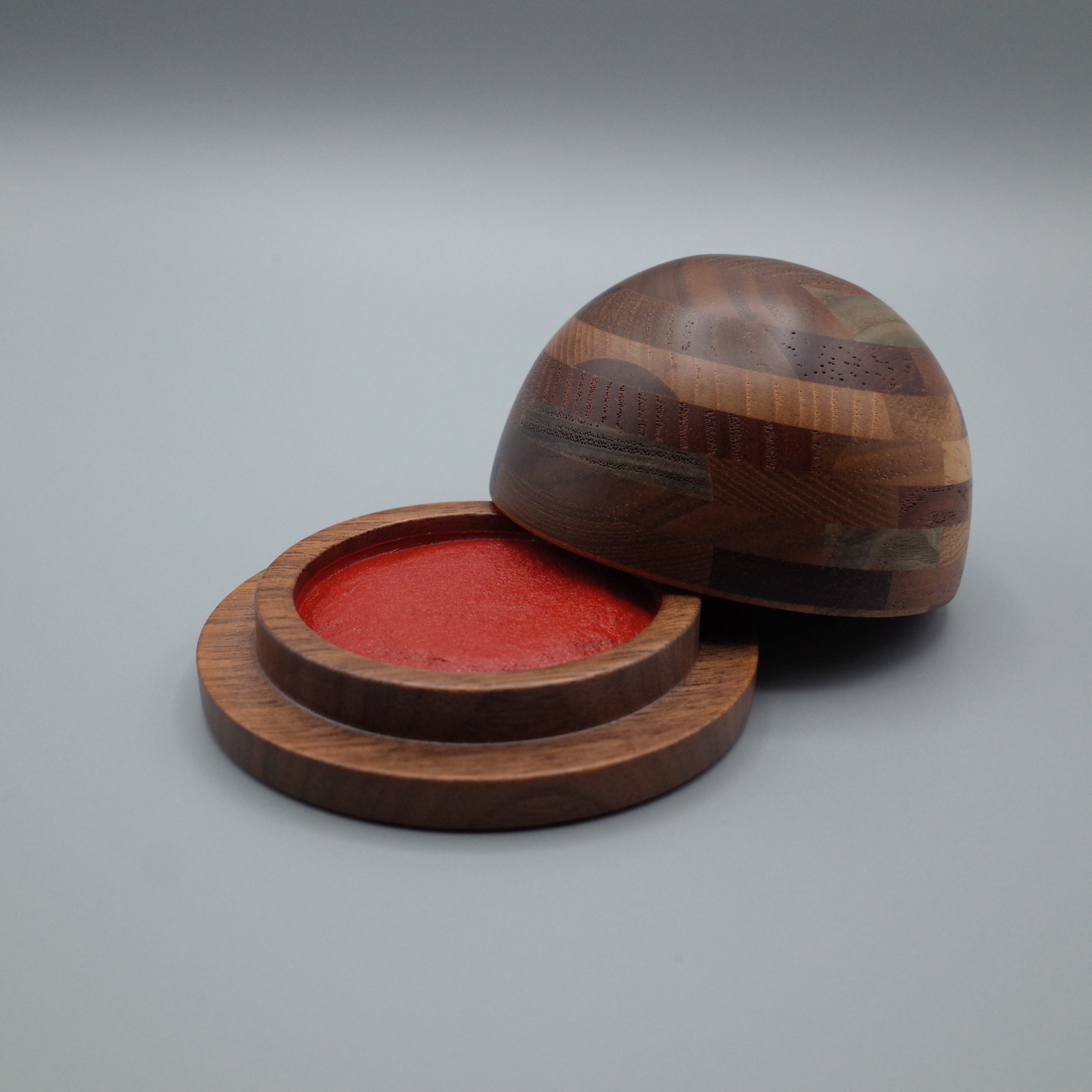 日光印 四季朱肉 寄木肉池 日光印 四季朱肉 寄木肉池 (S-10) 寸法:小(外形φ60.5×45.5 盤面φ37) 容量:40g 色:濃赤 箱根の伝統工芸品である寄木細工の「無垢」と呼ばれる方法で、職人によって一つ一つ手作業で作られた肉池(朱肉容器)です。 無垢の品は、各種木材を寄せたブロックをそのまま加工して製作していきます。 当肉池は伝統的な「小寄木」などと比較すると、種木も一度に作るブロックも大きめに作成された特別なものを木工ろくろによる形づくりと鍛錬な研磨・ニス塗りを経て作られており、高級感とモダンさ、優れた強度を持ち合わせています。 在庫状態 : 在庫わずかにあり ¥44,000(税別) ( 税込¥48,400 ) 数量